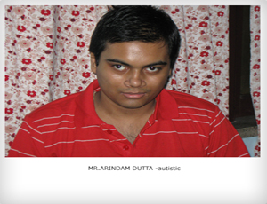 Arindam Dutta is the elder son of Mr. and Mrs. Ashis Dutta of 5B/2 Jagannath Ghosh Road, Kasba, Kolkata-700042.He was born on 11.01.1988 as first son of Dutta family, naturally there was flow of joy and nobody could recognize that Arindam is suffering from any disorder or disease. Doctors also certified as normal baby. But while Arindam was not responding to the call and did not express anything then also it was thought that some babies speak late age. Ultimately Arindam was diagnosed suffering from Autism with Mental retardation by NIMHANS, Bangalore.