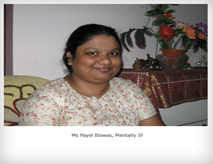 Ms. Payel Biswas was born on 31.12.1985.She is the only child of Mr. Biman Biswas, and Mrs Nupur Biswas residing at Debapriya Apartment, Flat no.12, 370G, Mahindra Banerjee Road, Kolkata -700060.Her father is a bank officer and mother housewife and owing to the transferability of the service, her family is to move different places of Assam,Orissa, North Bengal in her early childhood.She was a fearful child from her infancy but she did quite well in her school exams. She developed stammering and double vision at one point of her childhood from which subsequently she recovered.However while studying in class VII in school at Kolkata, She was physically tortured by two of her class teachers which ultimately triggered a psychological disorder in her and gradually developed mood disorder OCD.